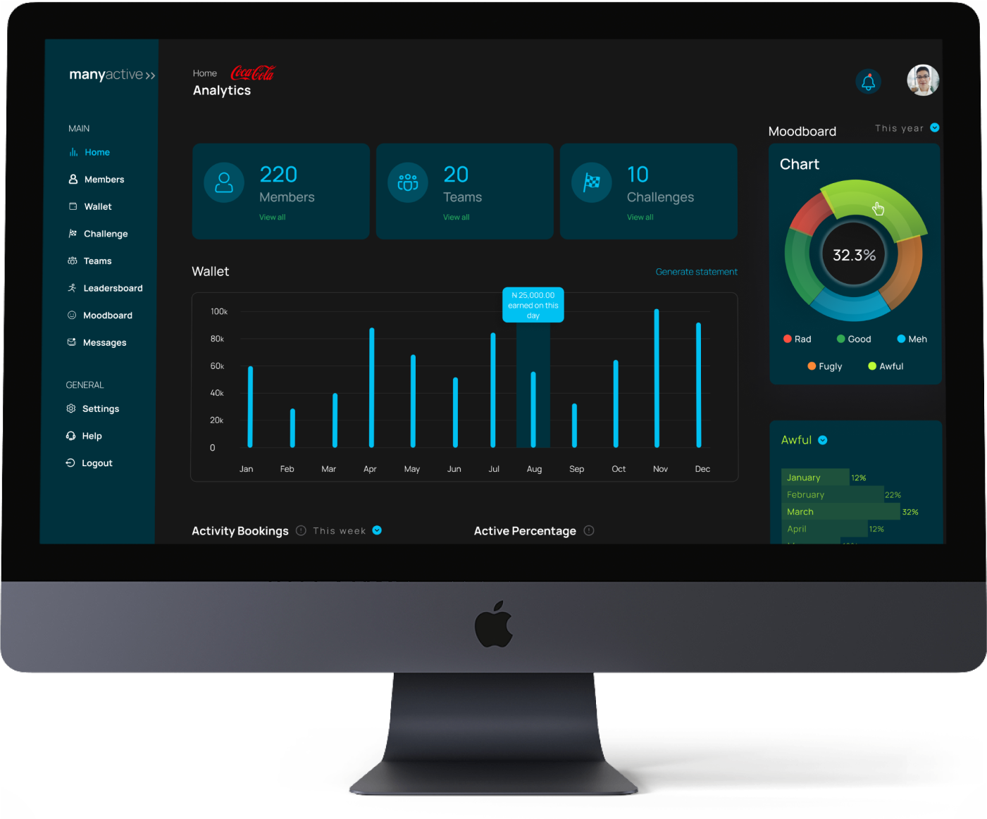 A single membership powering you to top-up employees wallets, track bookings and make wellness management expense a breeze